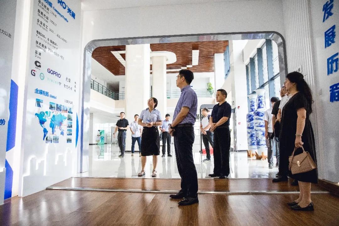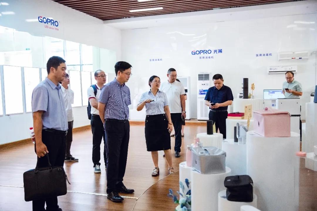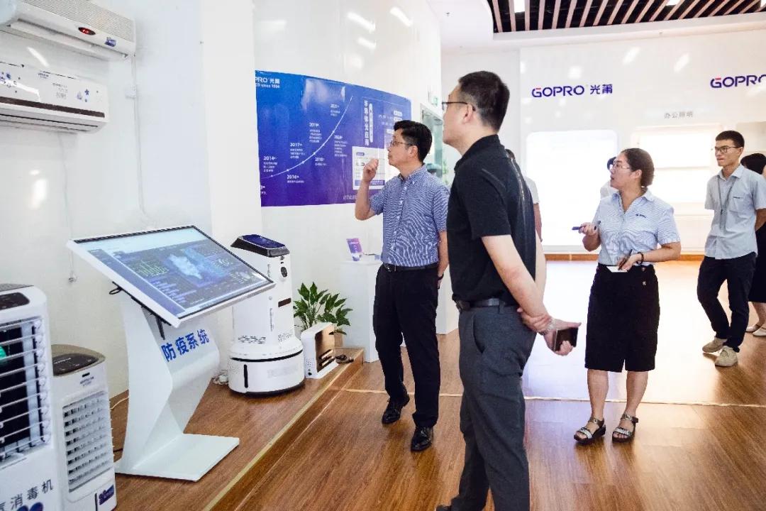 考察组一行在董秘张金燕的陪同下,,,,,,,首先旅行考察了今年会官网智慧空间,,,,,,,相识了公司的生长历程、营业结构、产品矩阵及焦点优势。。。。。。高主任对公司消杀防疫产品,,,,,,,体现出浓重的兴趣。。。。。。