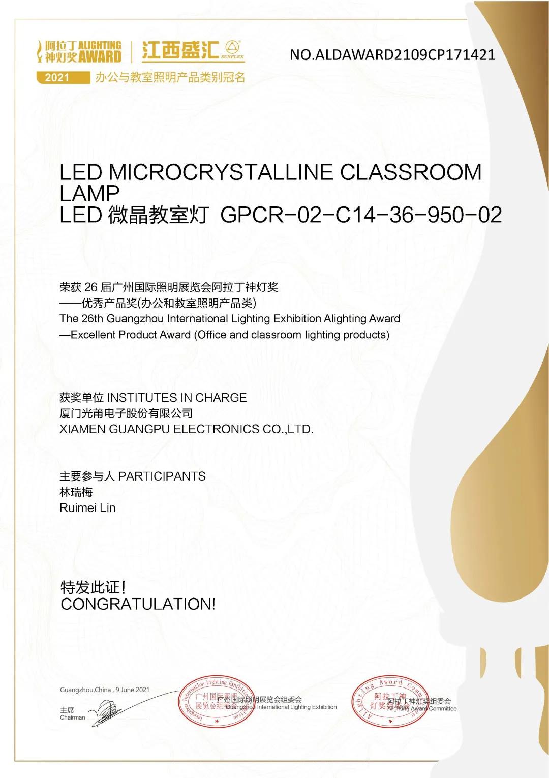 据悉,,,,,本届阿拉丁神灯奖自报名以来,,,,,共收到2000余个项目,,,,,优异奖入围项目仅219项。。。。。。。而今年会官网股份LED微晶课堂灯能在数千份作品中脱颖而出,,,,,捧得大奖,,,,,充分彰显其强盛的产品实力。。。。。。。