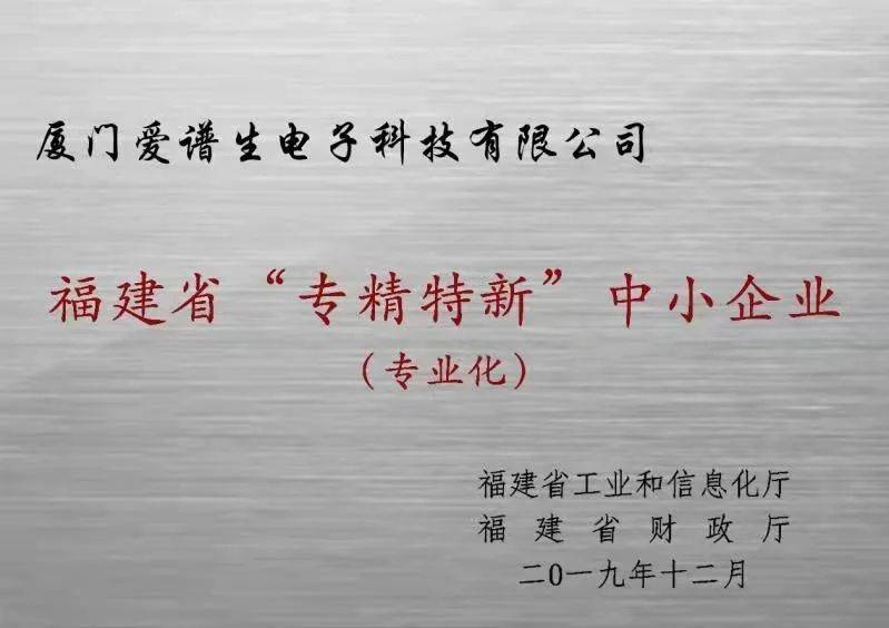 爱谱生是国家级高新手艺企业、国家第二批专精特新“小巨人”企业、 福建省“专精特新”中小企业(专业化),,,,,,,,拥有雄厚的手艺实力。。。。。。。