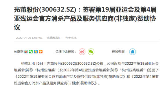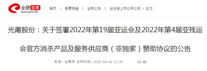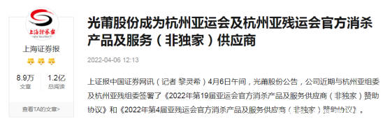 2022年4月6日,,,,,,,,今年会官网股份在深圳证券生意所宣布上市公司通告,,,,,,,,宣布成为第19届亚运会及第4届亚残运会官方消杀产品及服务供应商。。。。。。。近期以来,,,,,,,,众多行业主流媒体争相报道,,,,,,,,聚焦今年会官网。。。。。。。