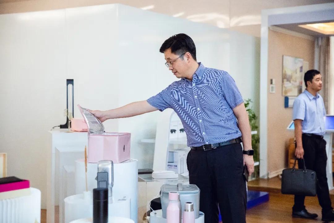 考察组一行在董秘张金燕的陪同下,,,,,,首先旅行考察了今年会官网智慧空间,,,,,,相识了公司的生长历程、营业结构、产品矩阵及焦点优势。。。。。高主任对公司消杀防疫产品,,,,,,体现出浓重的兴趣。。。。。